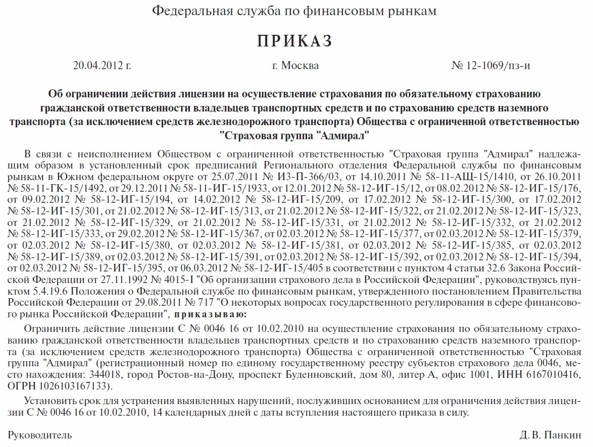 Приказ №12-1069/пз-и от 20.04.2012 г.