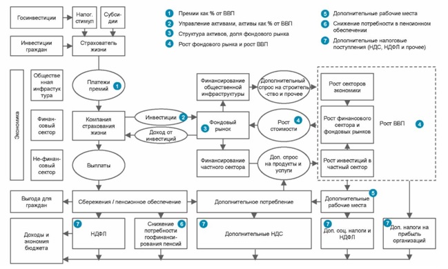 Реализация данной стратегии позволит российскому рынку страхования осуществить прорыв в развитии - от рынка размером в 665 млрд. рублей (23 млрд. долларов США) в 2011 г. (что равняется примерно одной четверти от совокупной премии какой-либо из ведущих мировых страховых компаний) и уровнем проникновения страхования в 1,22% от ВВП (без учета ОМС) к рынку с уровнем проникновения в 4-5% от ВВП в 2020 г. Это может сделать российский рынок страхования одним из самых крупных и быстрорастущих рынков страхования в мире. В отличие от сегодняшнего дня, такой рынок станет неотъемлемой частью финансового сектора Российской Федерации с существенным объемом активов в управлении, являющихся источником длинных денег для экономики. Вследствие значительных объемов активов на балансах и пре-финансирования обязательств, такая отрасль страхования будет играть стабилизирующую роль для финансового сектора, что разительно отличается от ситуации, с которой рынок столкнулся во время финансового кризиса 2008-2009 гг., когда страховые компании испытали серьезный кризис ликвидности.