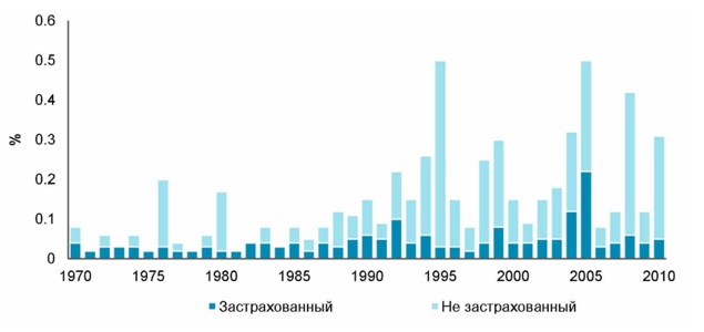 - Финансовый кризис застал страховую отрасль врасплох и нанес ей мощный удар, особенно сегменту розничного страхования. В 2009 г. рисковый сегмент рынка сократился на 7,5%, и восстанавливался гораздо медленнее банковского сектора. В 2010 г. рынок вырос на 8,6%, что ниже темпа инфляции, а объем рынка примерно сравнялся с объемом 2008 г.