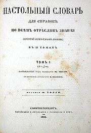 В 1835 книгоиздатель А. Л. Плюшар приступил к изданию «Энциклопедического лексикона» (под ред. Н. И. Греча и О. И. Сенковского), выпуск которого прекратился в 1841 на 17-м т. Среди других русских энциклопедий XIX века заслуживает внимания «Настольный словарь для справок по всем отраслям знаний» (т. 1—3, Санкт-Петербург, 1863—64), под редакцией Ф. Г. Толля.С 1890 года издаётся знаменитый «Энциклопедический словарь» Ф. А. Брокгауза и И. А. Ефрона, который, несмотря на немецкое происхождение, был создан при участии ведущих российских учёных. В 1890—1907 гг. вышло 82 основных тома, а также 4 дополнительных. Тираж составил, по разным данным, от 30 до 75 тыс. экз. В 1911 году фирма «Брокгауз и Ефрон» инициировала выпуск «Нового энциклопедического словаря» под ред. К. К. Арсеньева, но в 1911 году из 50 томов вышло только 29.